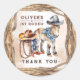 Difunde gratitud y alegría al perfecto estilo occidental con nuestro "First RODEO" Boy Cowboy Fiesta de cumpleaños Pegatinas redondos clásicos! El toque final perfecto para expresar su agradecimiento. Compra ahora y añade un toque de dulzura a tus favores de agradecimiento!