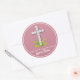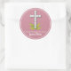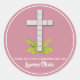 Pegatina Redonda Primera cruz comunitaria sobre Rosa polvoriento
