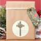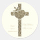 Pegatina Redonda Primera cruz de la comunión sagrada con palo y cor