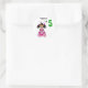 Pegatina Redonda princesa de 5 años (pelo negro)
