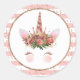 Pegatina Redonda Princesa de Unicornio de Oro Rosa