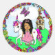 Pegatina Redonda Princesa Étnica de bonito y Castillo de Unicorn