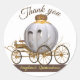 Quinceañera gracias pegatinas con un carro dorado y blanco de princesa de cuento de hadas y nombre personalizado. Decorar sobres o usar como precintos de envoltura en notas de agradecimiento a los invitados.