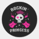 Cute design presenta un cráneo con ojos en forma de corazón y dos guitarras eléctricas cruzadas, y la cita "Rockin' Princess".