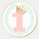Pegatina Redonda Princesa Rosa Crown Baby Girl Primer cumpleaños