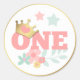 Pegatina Redonda Princesa Rosa "Una" Niña Heredera Primer Cumpleaño