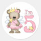 Pegatina Redonda Princess Bear 5 cumpleaños