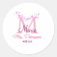 Pegatina Redonda Profesora de monograma de purpurina de corazón ros