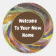 Este nuevo pegatina del comprador en el hogar es una forma barata de sellar una nota de agradecimiento y presenta un brillante patrón circular de tintes girados. "Welcome To Your New Home" (Bienvenido a tu nuevo hogar) añade un toque especial de bienvenida y hace un artículo promocional único para los inmobiliarios y las oficinas de inmobiliaria. Personalice fácilmente el texto si lo desea
