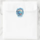Pegatina Redonda Pronto voy a venir a la divertida Baby Shower Blue