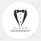 Pegatina Redonda Propuesta de Groomsman personalizada de Black Tuxe