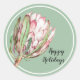 Pegatina Redonda Protea tropical rosada floral en la menta