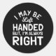 Un ingenioso diseño para individuos de izquierda que reivindican su inteligencia y singularidad, que abrazan su mano dominante y desafían juguetamente el concepto de tener razón.