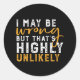 Pegatina Redonda Puedo Estar Equivocado Pero Muy Poco Probable Sarc