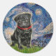Pegatina Redonda Pug 13 (negro) - Noche estrellada