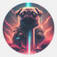 Pegatina Redonda Pug Adorable en traje futurista de robots