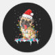 Pegatina Redonda Pug Christmas Tree Lights Santa Dog Xmas