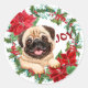 Pegatina Redonda Pug Dog Joy Poinsettia Navidades Wreath