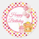 Haga especial cualquier regalo de cumpleaños del chica agregando este pegatina como etiqueta de regalo al regalo de cumpleaños. El diseño de los puntos polka amarillo y rosa brillante es muy elegante, y añadir algunos dulces, como pasteles y pastelitos, hace que el diseño sea divertido. Los globos le dan un toque festivo adicional a la etiqueta de regalo. Ideal para un fiesta de verano. Cumpleaños.
