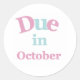 Un lindo diseño de maternidad en camisetas, botones, tazas, bolsas de té y otros artículos, genial para que la madre embarazada sea y también para que el papá esté con un diseño de texto rosado que dice "Vence en octubre"!