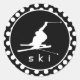 Pegatina Redonda Puntos de Polka blancos y negros; Esquí de nieve
