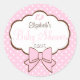 Pegatina Redonda Puntos de Polka Rosa y Marrón-Baby Shower