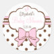 Pegatina Redonda Puntos de Polka Rosa y Marrón con huellas de bebé