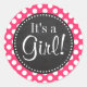 Pegatina Redonda Puntos de Polka Rosado Caliente; Cartón de Chalkbo