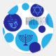 Pegatina Redonda Puntos Hanukkah azul retro