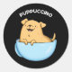 Pegatina Redonda Pup-pucccino Funny Cappuccino Pun Dark BG