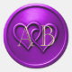 Pegatina Redonda Purple Two Hearts Intertwined Monogram Wedding