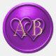 Pegatina Redonda Purple Two Hearts Intertwined Monogram Wedding