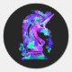 una obra de arte decorativa de un caballero de ajedrez de color púrpura con un cuerno como un unicornio de colores violeta surrealistas.