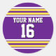Pegatina Redonda Púrpura con franjas blancas amarillas en equipo Je