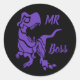 Pegatina Redonda Púrpura Trex el jefe Dino