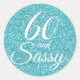 Pegatina Redonda Purpurina Azul 60 y cumpleaños 60 Sassy