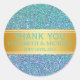 Pegatina Redonda Purpurina Azul Tarjeta Dorada Gracias