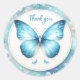 Pegatina Redonda Purpurina Blue Pastel Mariposa - Gracias -