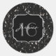Pegatina Redonda Purpurina brillante blanco y negro brillante deste