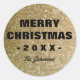 Sorprendentemente falsos purpurinas rondan pegatinas con texto en negrita de "Feliz Navidad", incluyendo el año y el nombre personalizado.