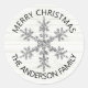 Pegatina Redonda Purpurina de Faux Snowflake de plata estilo moder