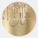 Pegatina Redonda Purpurina de goteo de oro de moda Monograma Metali