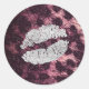 Pegatina Redonda Purpurina de los labios de besos de plata, leopard