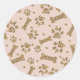 Pegatina Redonda Purpurina de oro Beige Mascota de Rubor Paw Perro