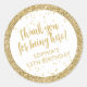 Purpurina de oro y Confetti brillantemente personalizado gracias a los pegatinas por una divertida y divertida fiesta de cumpleaños. El texto editable lo hace perfecto para el primer quinto u octavo cumpleaños de una niña, o para un gran chica 13° 15° dulce 16°, 18° o 21° cumpleaños o graduación. Las etiquetas de los favores de cumpleaños "gracias por estar aquí" son excelentes para un fabuloso 30 40 50 60 80 o 90 cumpleaños.