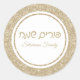 Pegatina Redonda Purpurina de oro clásico Hebreo feliz Purim