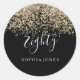 Pegatina Redonda Purpurina de oro Confetti Black 80 cumpleaños fies