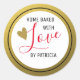 Pegatina Redonda Purpurina de oro horneado con amor rojo y blanco