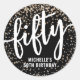 Pegatina Redonda Purpurina de Oro Negro 50 cumpleaños