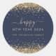 Pegatina Redonda Purpurina de oro Nombre Navy Azul Feliz Año Nuevo